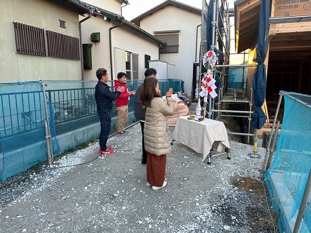 上棟後は、上棟式を弊社の施工管理スタッフの田端の進行のもと執り行いました!