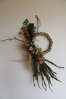 好きな形のしめ縄に、ドライフラワーや、生花、木のみ、水引などなど・・・