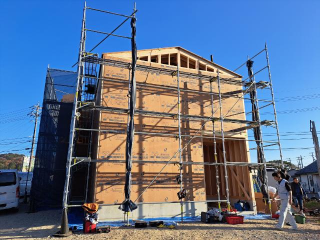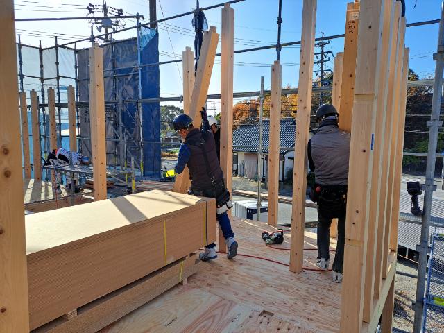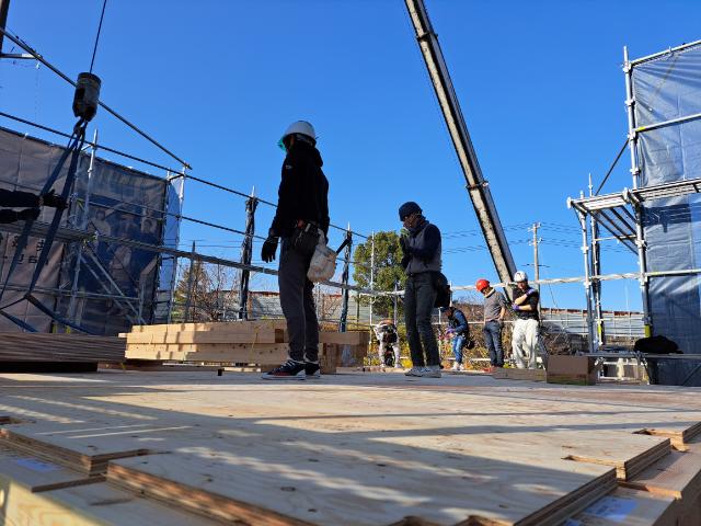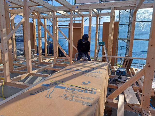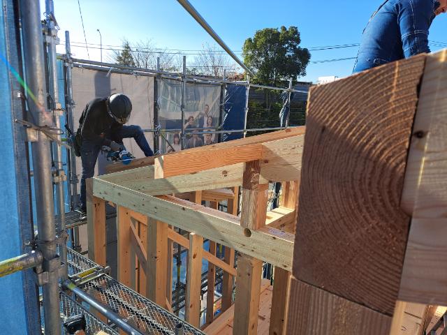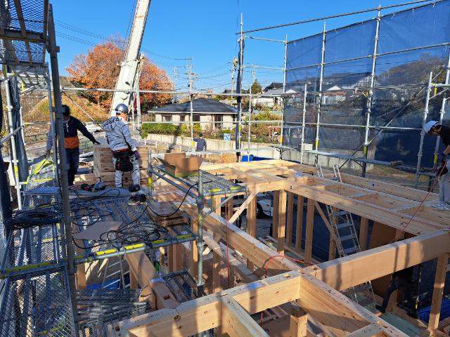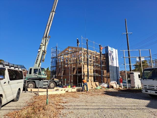 上棟日当日は朝は肌寒かったですが、日中は暖かく上棟日和でした!