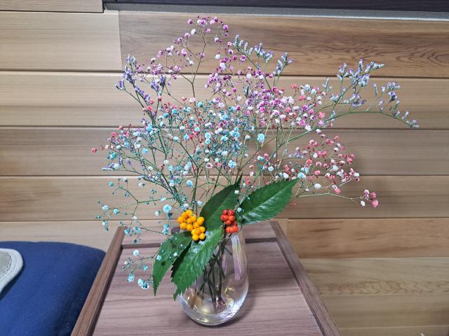 お部屋の中に生花があると、雰囲気が華やかになりますね。癒されます(*^^*)