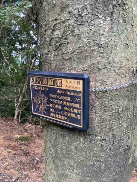 参拝道の樹木たちには、樹木プレートがかけてあります。