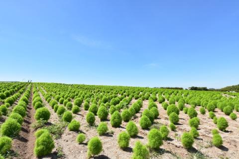 少し歩くとコキアが敷地いっぱいに植えられていました。夏の青々としたコキアも好きですが、秋の鮮やかな赤に染まったコキアも大好きです(^^)/