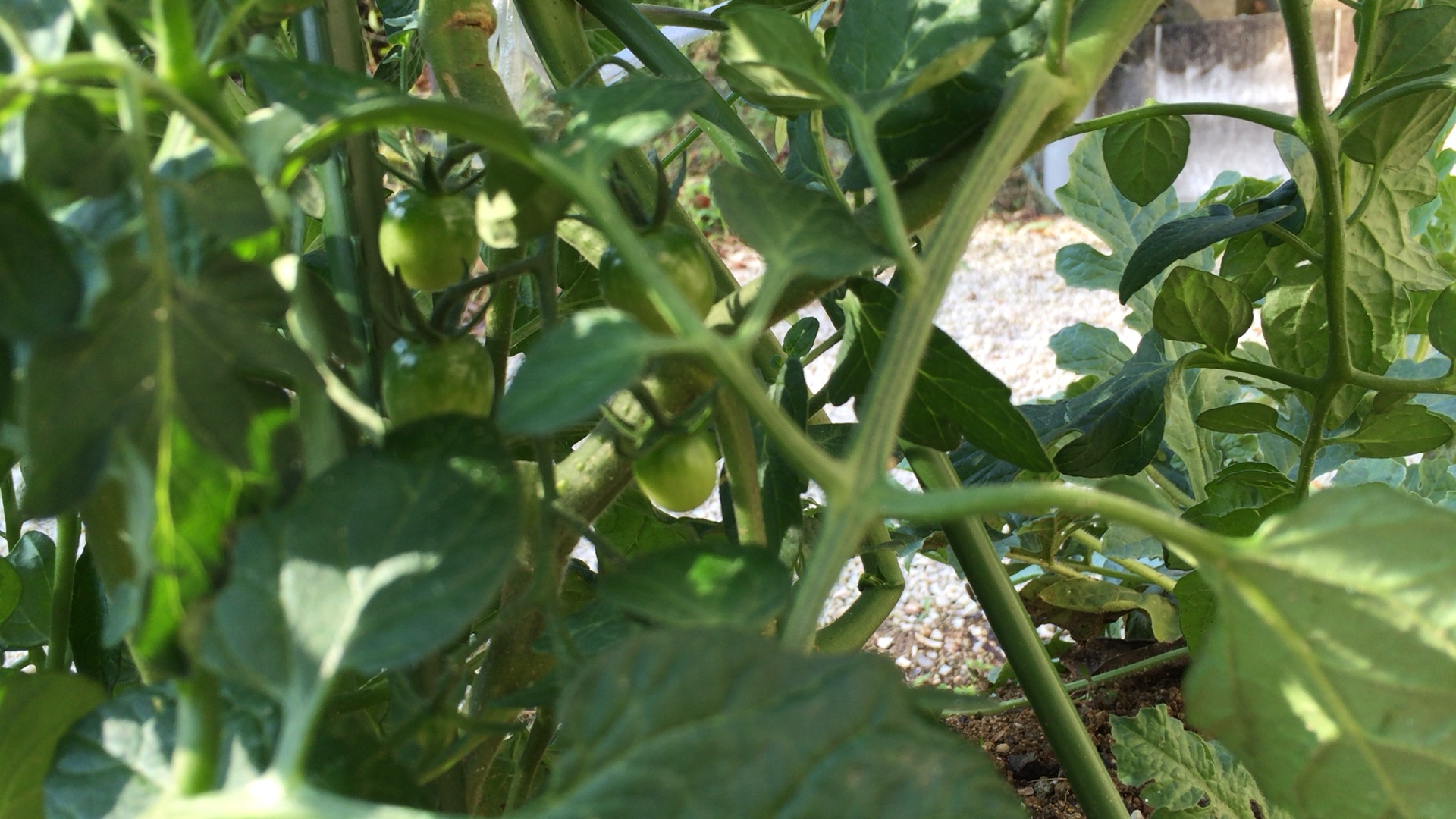 それは、我が家の家庭菜園のトマトとナスの枝がポキリッ。