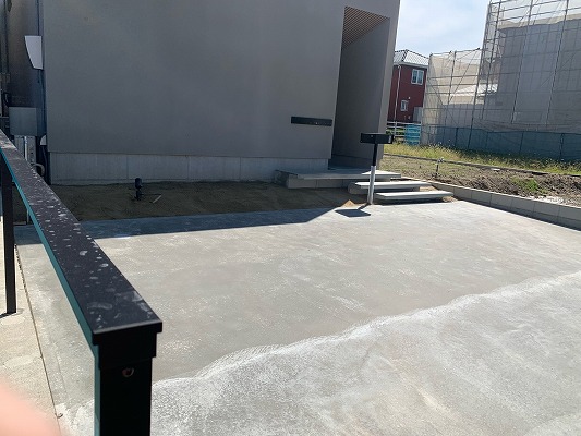 写真は、駐車場のコンクリート打設した翌日です。