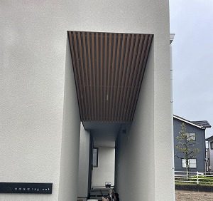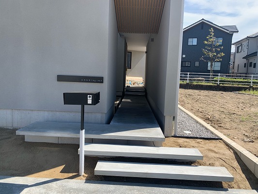 また、今回のモデルハウスでは、通常玄関ポーチや玄関外の階段は、ウッドデッキで作るのが、