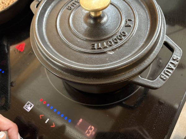 ④ぐつぐつしたら蓋をしてIHを弱い設定にして13分のタイマーをかける
