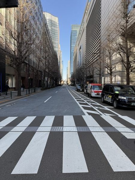 その見学へ行く東京の早朝の街並みがキレイだったので、パシャリ。