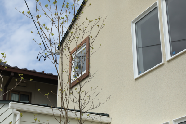 今回は3.5mの高さの子を植えたので、モミジと外壁が相乗効果で