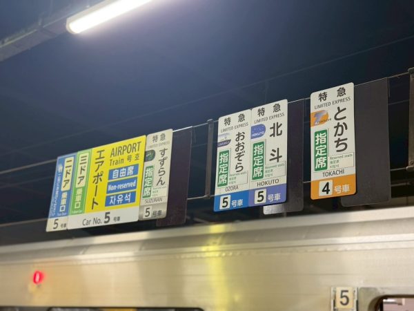 札幌駅で気が付いたのですが、愛知県の駅のホームとは違う電車の乗車口・号車の表し方がとても可愛らしかったです。