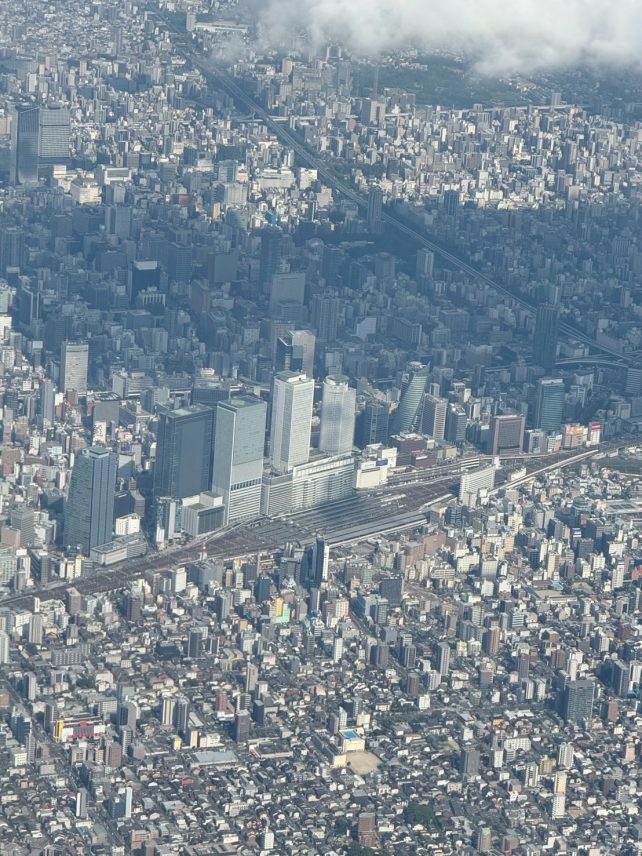 最後は、飛行機から見る、JRセントラルタワーズに出迎えられて、北海道旅終了です。