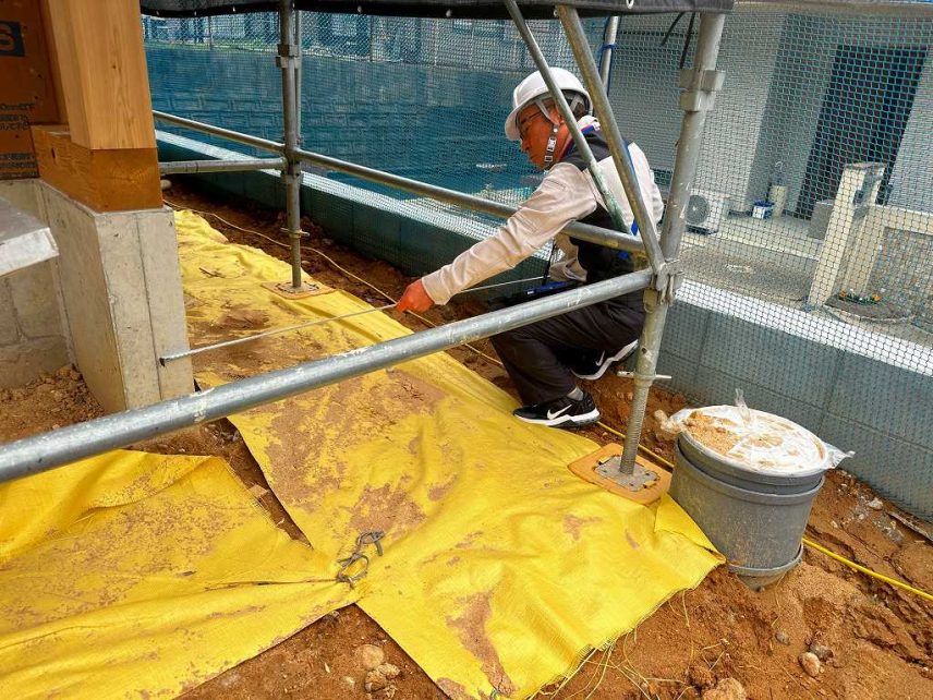 中間検査では、第三者である建築確認検査員が新築地にきてくださり、建物を検査してくれます。
