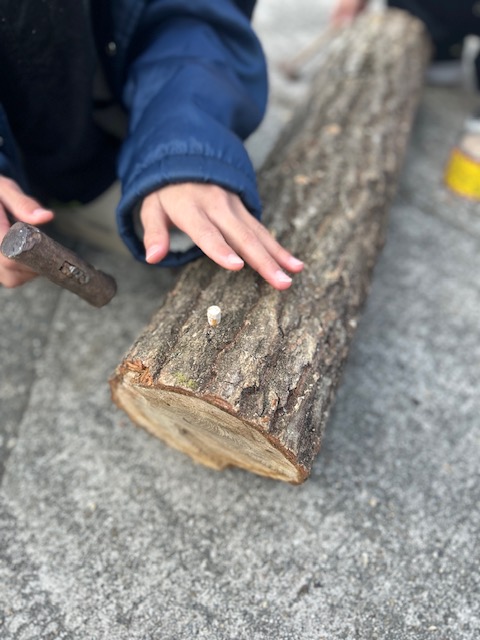 数年前、山で伐採したクヌギの原木に、椎茸菌を培養した種駒をハンマーで打ち込む体験をしました。