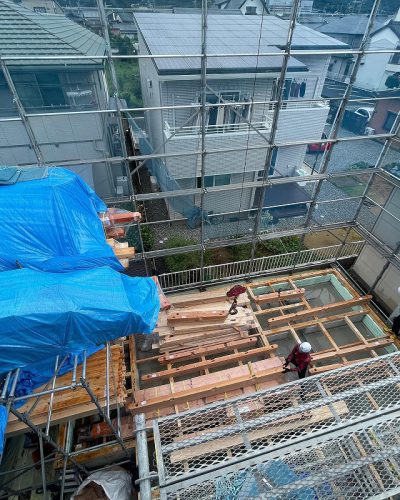 今がチャ~ンス!とばかりに、あまり台風の吹き替えしもなく、暑くもなく、絶好の上棟日よりでした!
