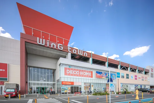 車で2分の距離にある「ウイングタウン」では食料品のほか日用品や生活雑貨が揃います。