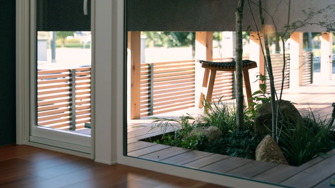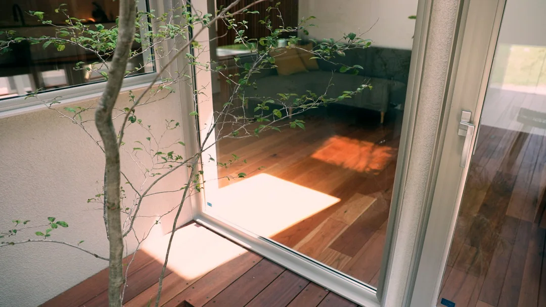 ウッドデッキから2階まで届く高さで、1階、2階どこからでも樹形を楽しむことができます。
